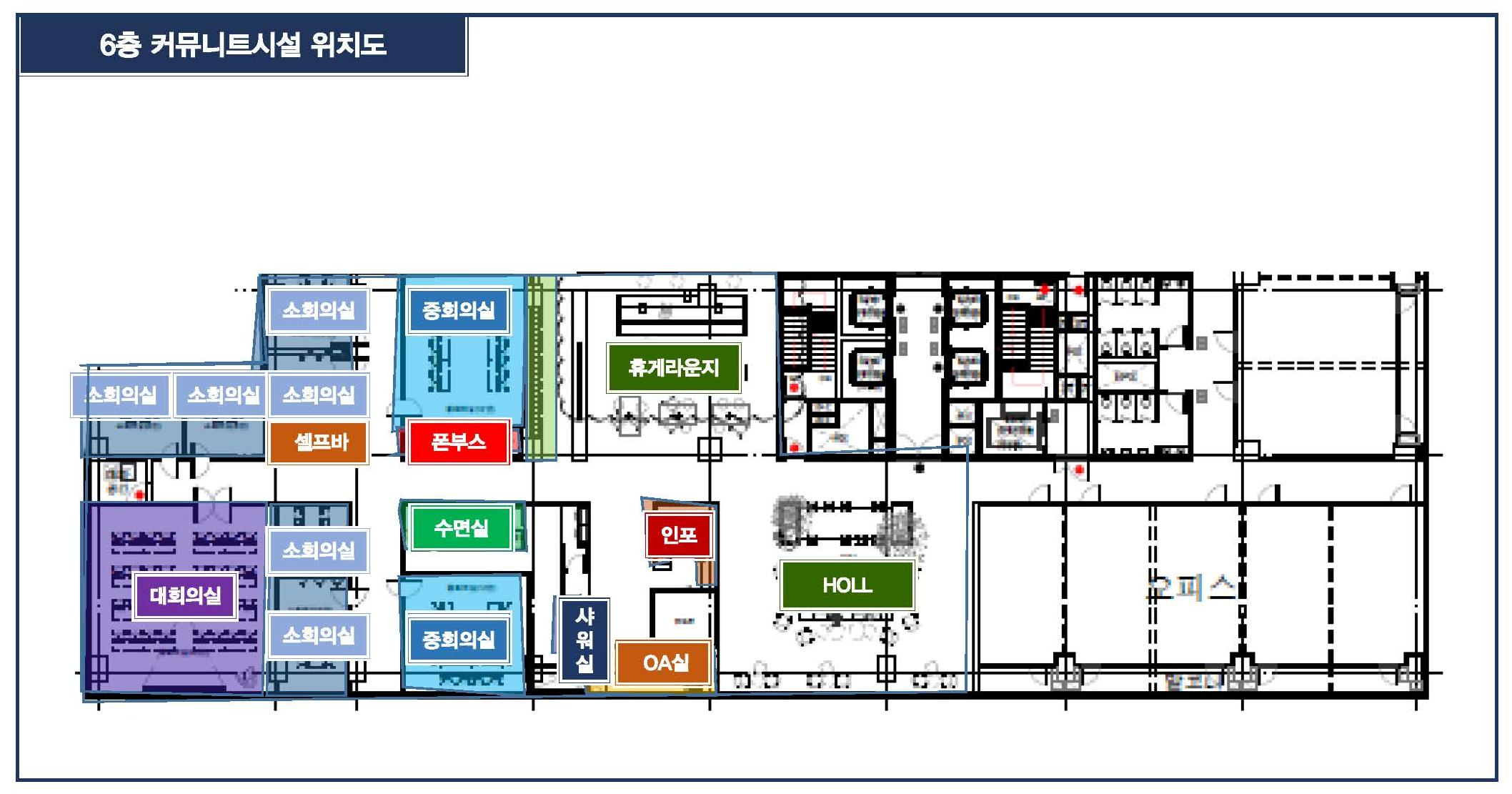 뿐만 아니라 DMC스타허브플러스는 업무용 공간효율성을 최대화 하기 위해 6층에 라운지, 회의실, 수면실, 폰부스, OA실 등 각종 편의시설을 갖추게 됩니다. 이러현 편의공간이 기본적으로 갖춰지기 때문에 이러한 공간을 위한 비용도 절감되고 사업장을 작게 꾸려도 업무와 미팅 등을 편리하게 하실 수 있습니다.