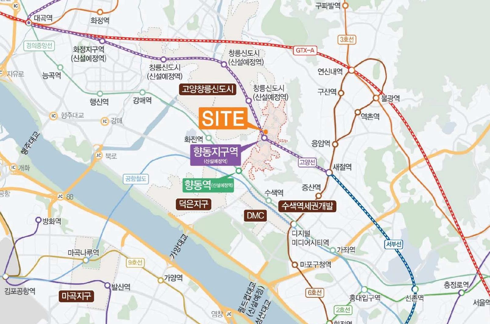 향동지구는 무엇보다 서울과 거리상 가까워서 지리적 접근성이 좋은데, 경의중앙선과 고양선 경전철역이 신설예정이기 때문에 대중교통 접근성도 좋아보이네요. 자유로와 강변북로에 접근하기도 수월해 서울 북서부 지역에 있는 사업체들이 눈독 들일만한 지역 중 하나입니다.